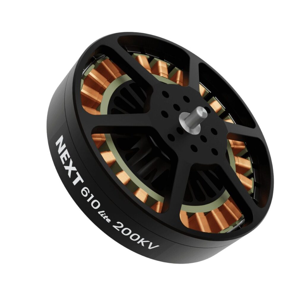 The ZDrive Next N610 Lite (200KV) is a precision-engineered, lightweight motor designed for heavy-lift multirotor UAVs. Constructed from aerospace-grade materials, it combines high torque output with remarkable power efficiency. Weighing just 201 grams, the N610 Lite achieves up to 9.68 kg thrust, optimized for 10S–12S (up to 14S) LiPo setups. This makes it an excellent fit for delivery drones, surveying systems, and aerial photography platforms that prioritize both lift and endurance.